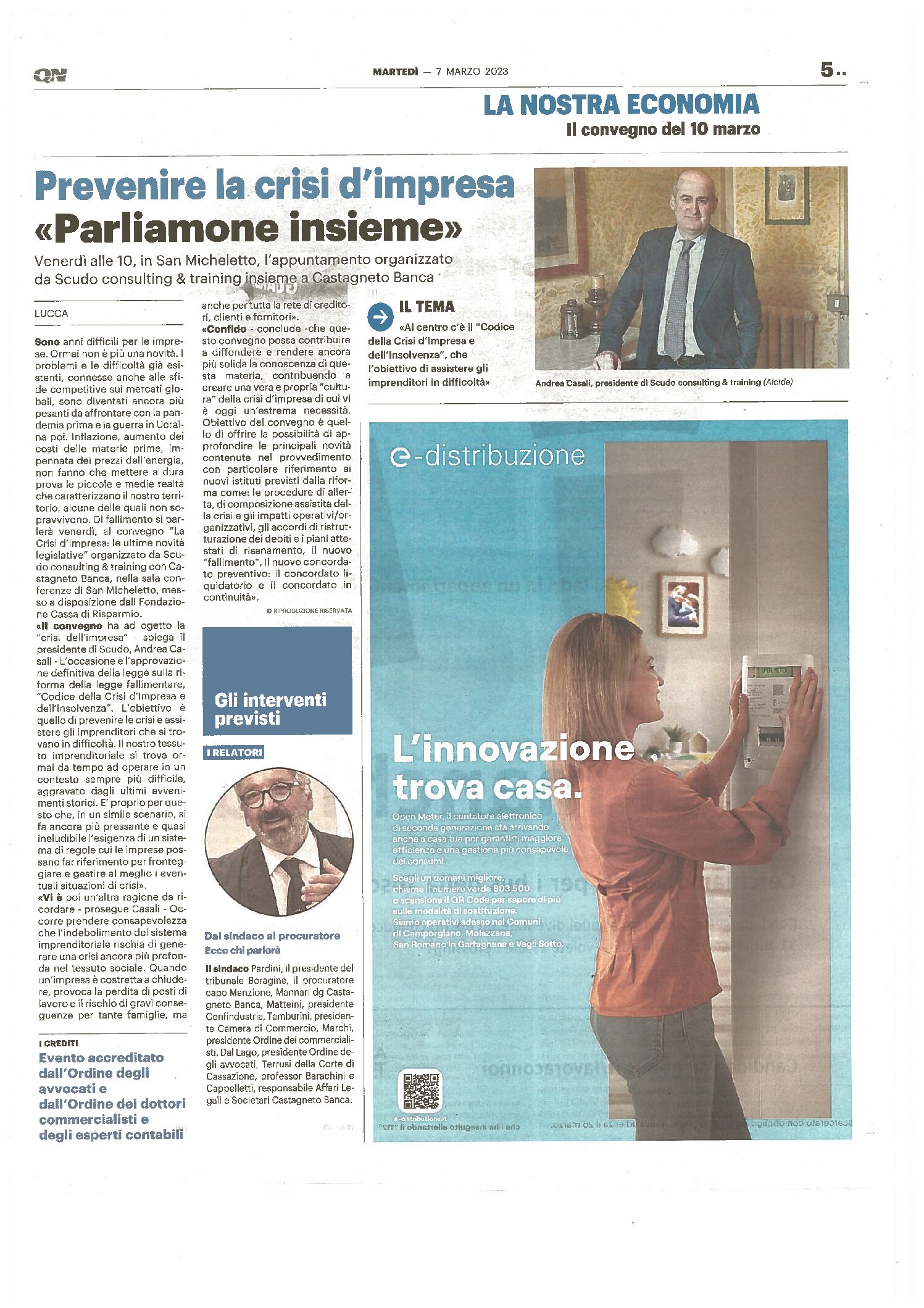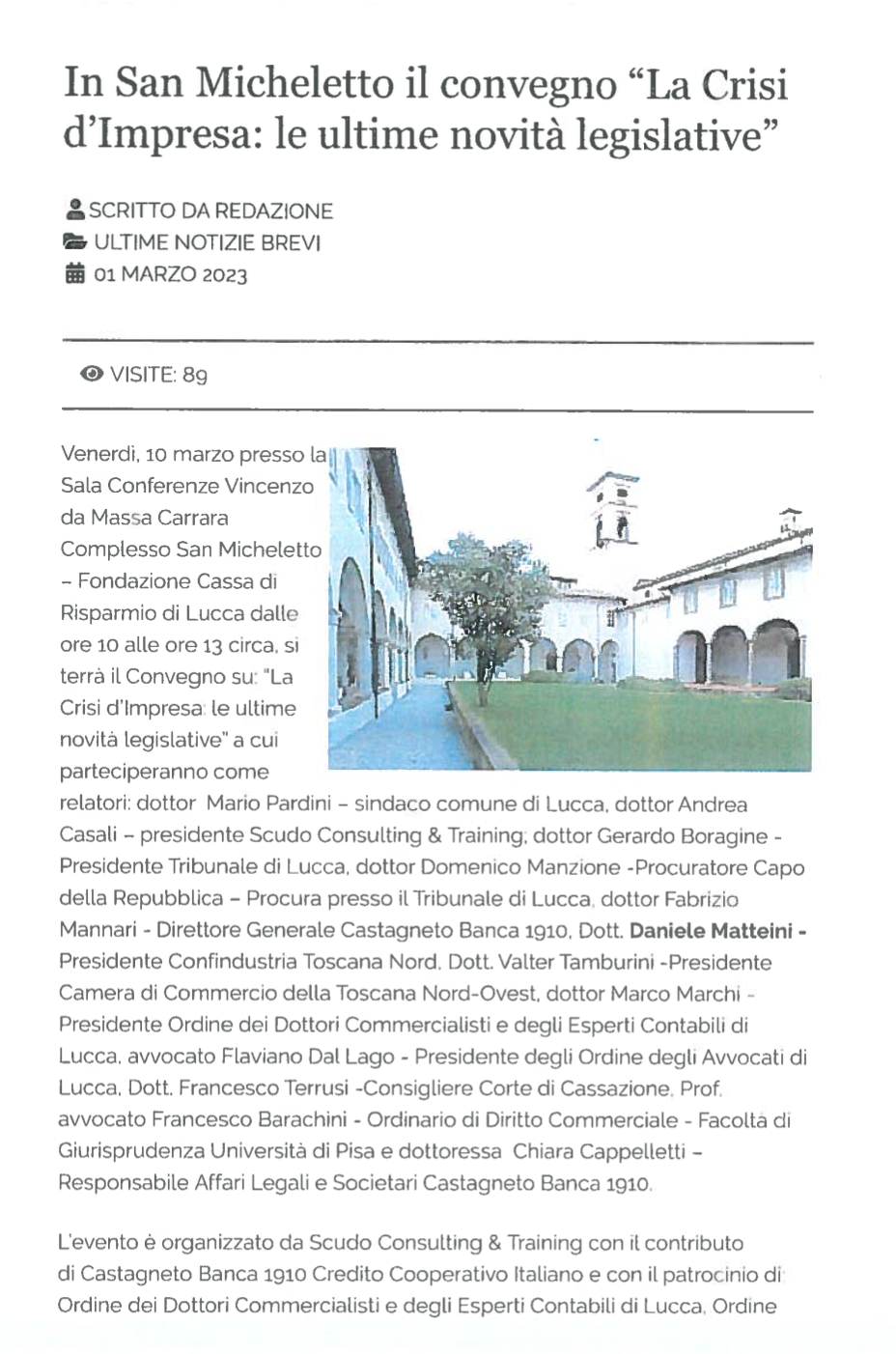 Il 10 marzo 2023, alle ore 10.00, si terrà a Lucca il Convegno organizzato da Scudo Consulting & Training con il contributo di Castagneto Banca 1910
